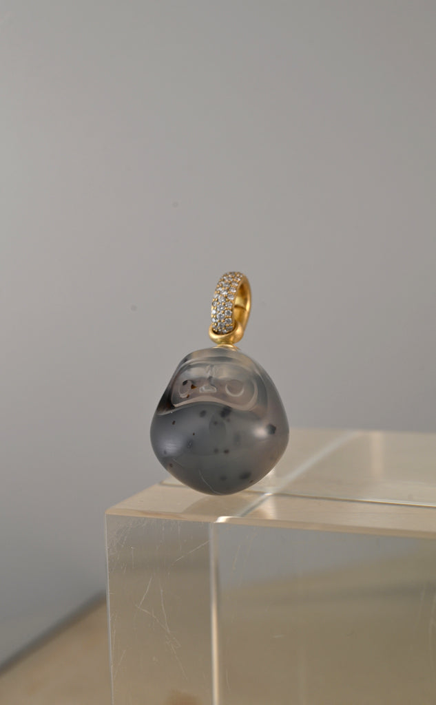 A hand-carved Montana Agate Daruma set in 18k gold.